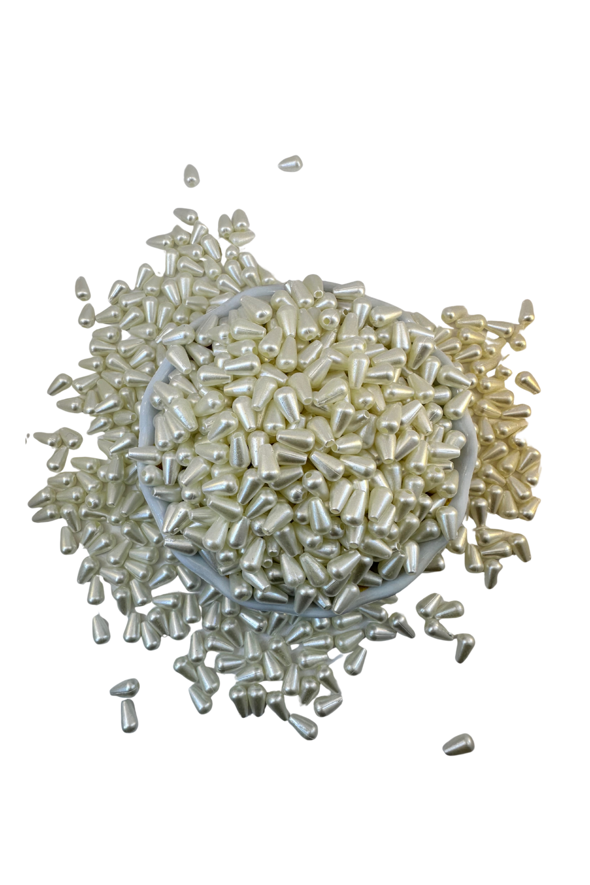 Damla Şekilli İnci Boncuk – MCİK-14 – Krem Renk – 185 Adet Delikli Hobi Boncuğu